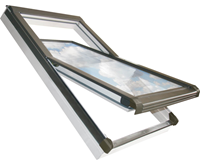 Öppningsbart inåtgående takfönster, dubbelmontage, takpannaTakfönster Pivåhängt Termo PVC Bioclean 4/16/4 inkl aluminiumplåt (utvändig intäckning) och täckduk. Dubbelmontage, för profilerad taktäckning (takpanna) Avstånd mellan fönster = 100mm Varje fönster är kundunik. Alla priser är inkl moms. Vitt handtag, microventilation i handtag. Rullgardin finns som tillval. Priser inkl aluminiumplåt (utvändig intäckning) och täckduk! Finns endast som 2-glas.