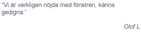 Många av våra kunder är stolta över sina fönster och dörrar. Låt dig inspireras och se hur bra allt kan bli med PVC-fönster. Hos oss hittar du billiga lösningar som passar alla plånböcker och behov. Slipp underhåll och känn dig trygg med vetskapen att dina fönster kommer att hålla en lång tid framöver.